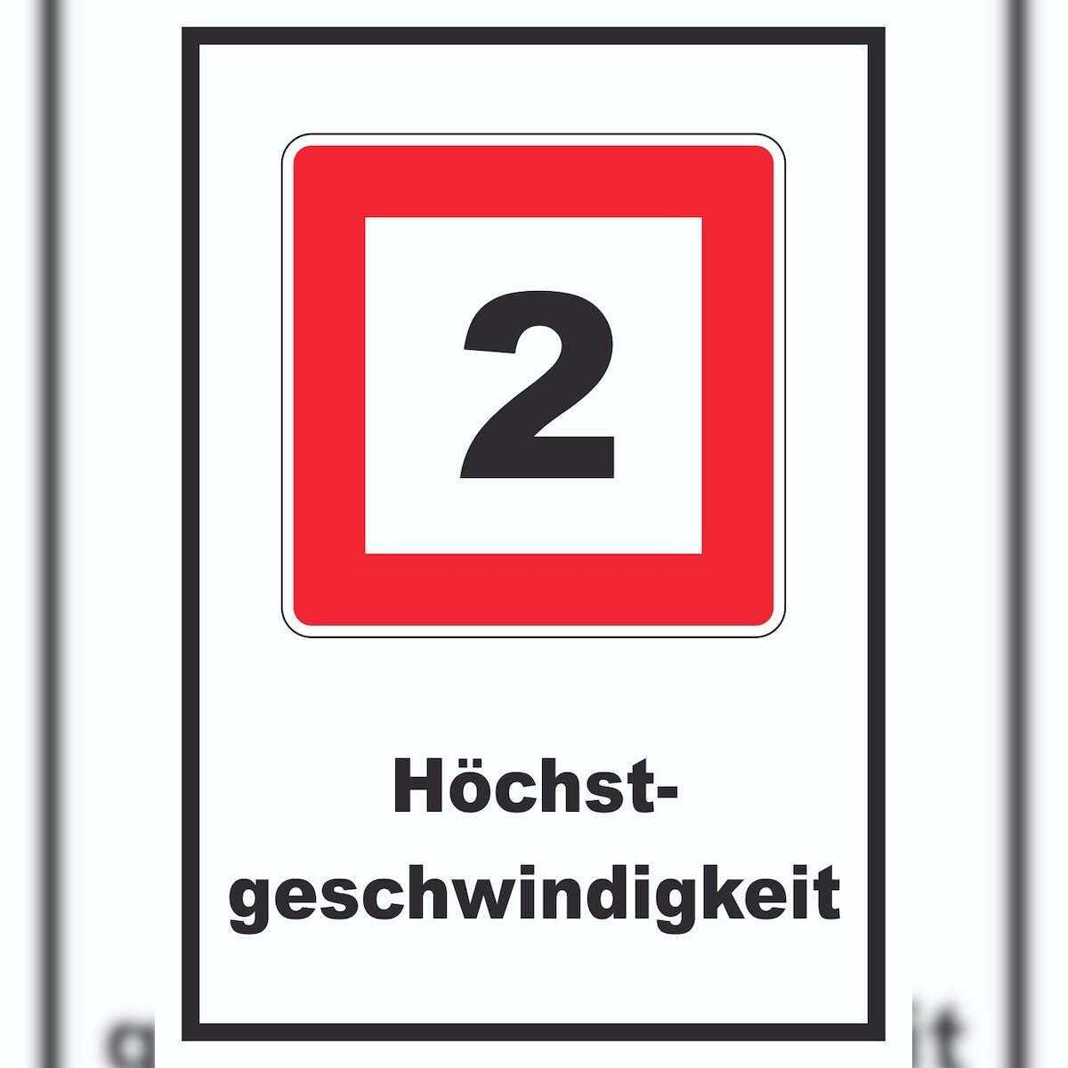HB-Druck Höchstgeschwindigkeit 2 km/h nicht zu überschreiten Schild mit Symbol und Text A1 (594x841mm)