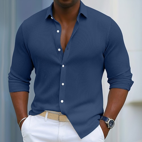 Herren Hemd Cordhemd Knopfhemd Blau Schwarz Weiß Marineblau Purpur Langarm Einfach Umlegekragen Lässig Täglich Button-Down Bekleidung Polyester Mode Streetwear Klassisch Lässig