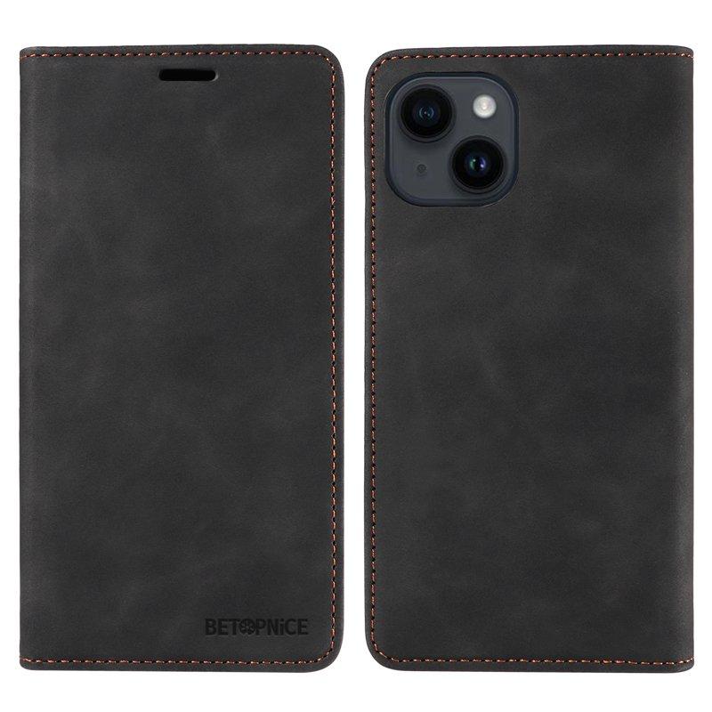 BETOPNICE 003 iPhone 15 Plånboksfodral RFID Blocking Konstläder - Svart