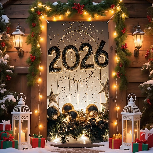 Capodanno Poster Copertura della porta Banner per esterni Buon anno 2026 Carino 3D Da serata Dormitorio Stanza per adolescenti Dormitorio universitario Ragazzi Man Cave Frat Bedroom Sfondi di ripresa