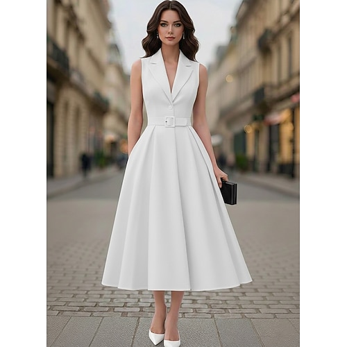 Retrò Vintage Anni 1950 Midi Vestito Vestito Svasato All'americana Tinta unica Linea ad A Costume Per donna Mascherata Matrimonio Vacanza Tè Adulti Vestito