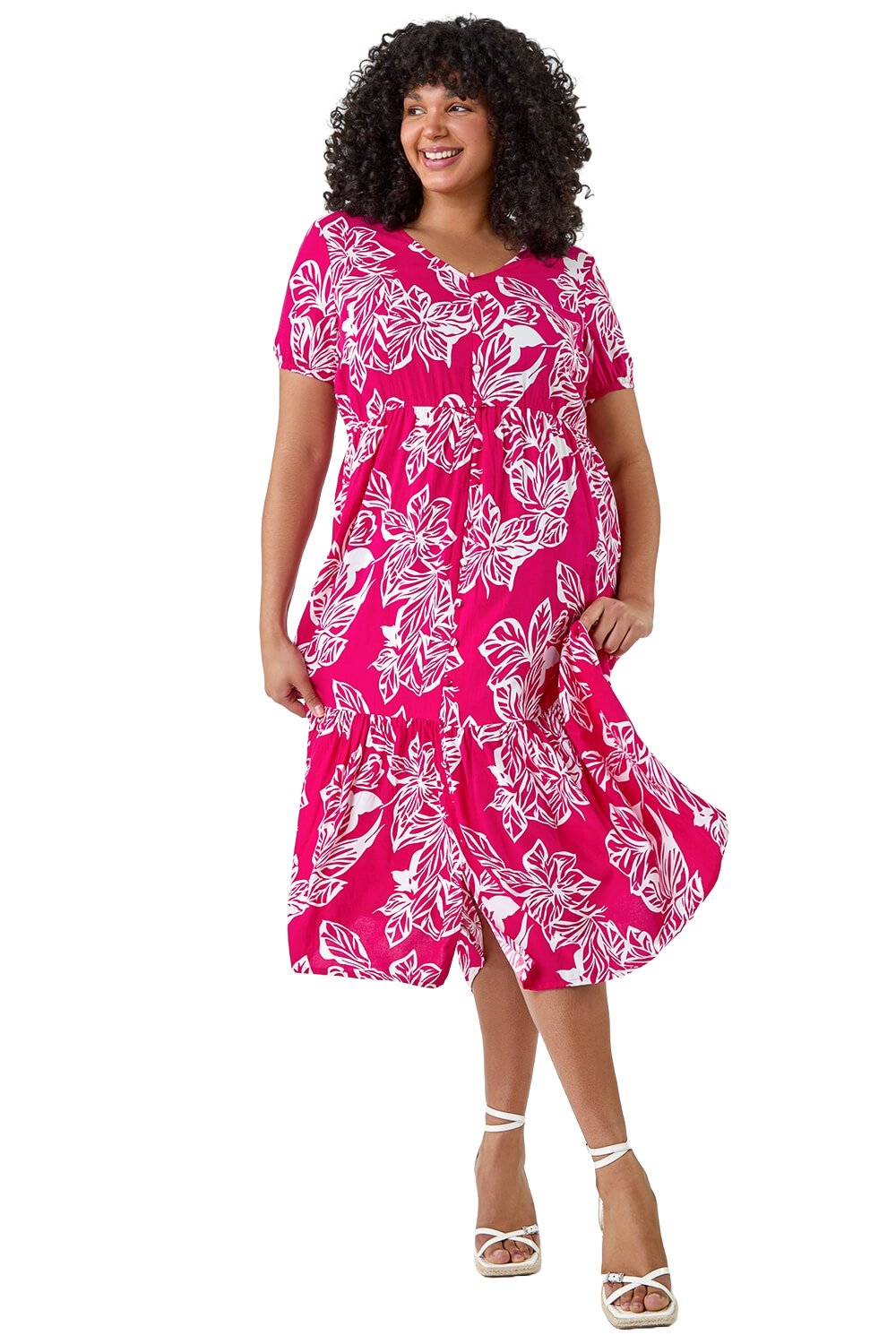 Roman Curve Womens Floral Print Tiered Midi Dress - Pink - Size UK 26-28 | Roman Curve Sale | Discount Designer Brands