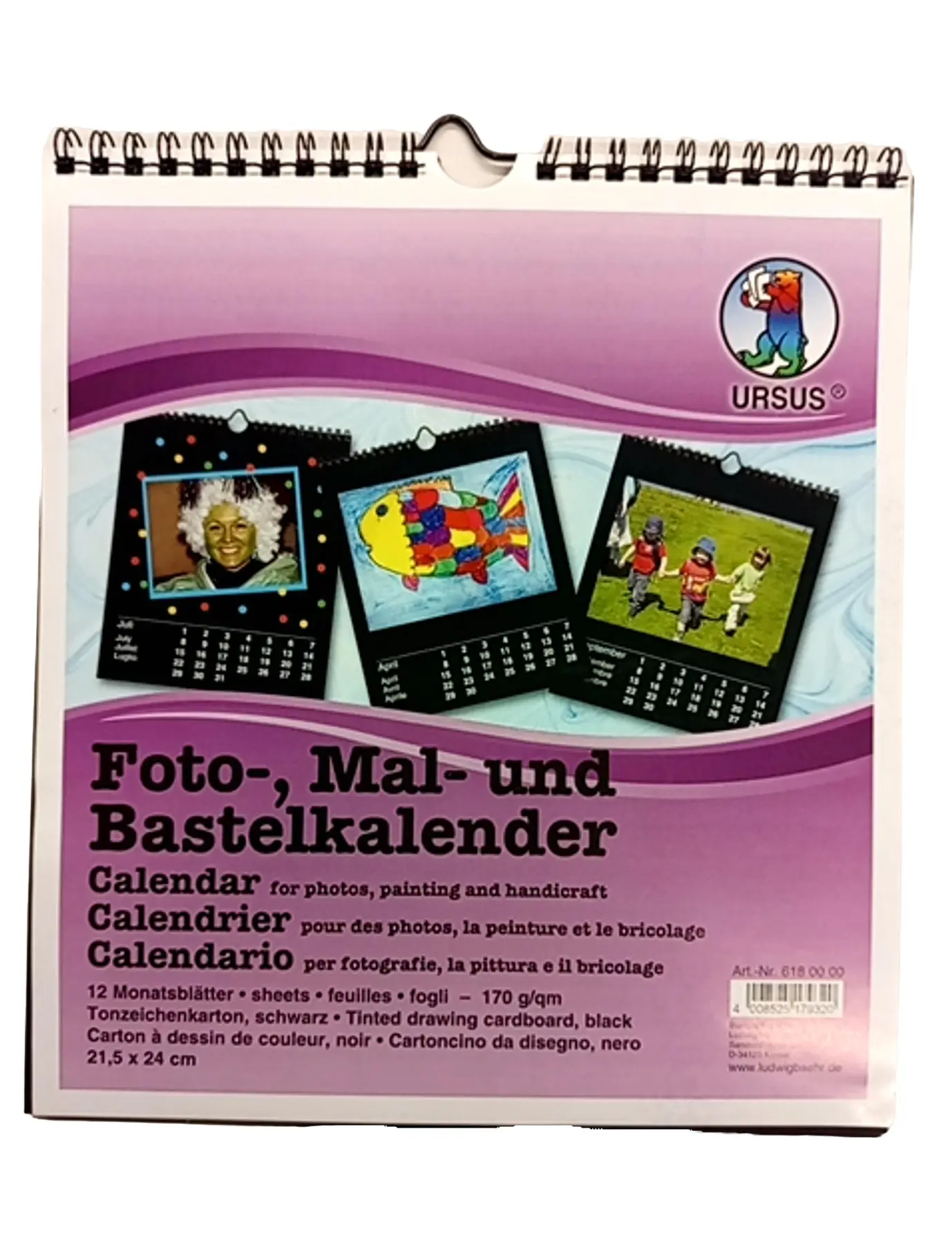 URSUS Foto-, Mal- und Bastelkalender 21,5x24 cm Schwarz Spiralbindung, 12 Teile, Tonzeichenkarton