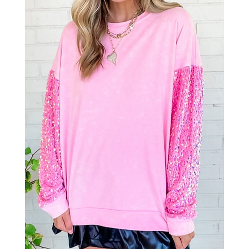 Per donna Blusa Semplice Casual Manica Lunga Girocollo Top Regolari Quotidiano Ferie Uscire Paillettes Patchwork Nero Rosa Autunno Inverno