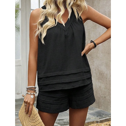 Per donna Moda Streetwear Tuta Bolero Top Senza Maniche All'americana Tinta unica Volant Casuale Quotidiano All'aperto Nero Beige Estate Vestibilità comoda