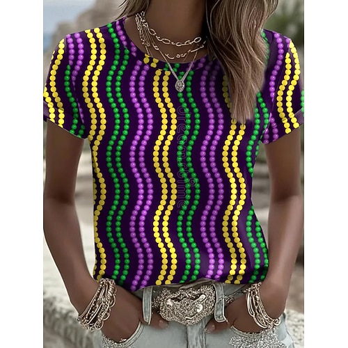 Carnevale Per donna Maglietta Floreale Vintage Elegante Classico Manica Corta Girocollo Top Regolari Quotidiano Stampato Nero Giallo Viola Verde Estate Primavera