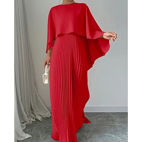 Per donna Abito Lungo Maxi Abito Vestito da Festa Abito da Cocktail Abito arricciato Elegante Moderno Festa serale Feste Occasione speciale Vestibilità regolare Semplice Manica Lunga Girocollo Nero