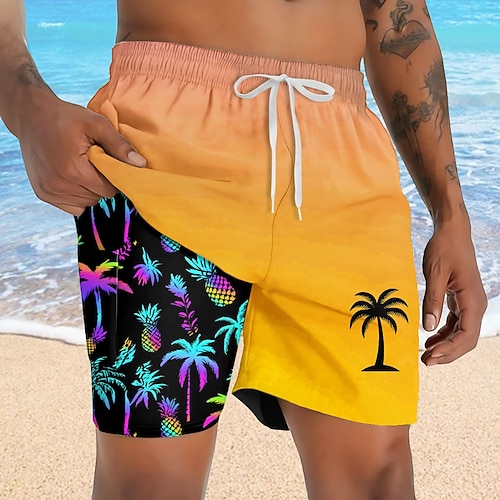 Per uomo Albero di Cocco Colore sfumato Piante Tropicali Pantaloncini foderati Pantaloncini da bagno 2 in 1 Pantaloncini da mare Misura del girovita medio Hawaiano Ferie Tasche Laterali Con Fodera a