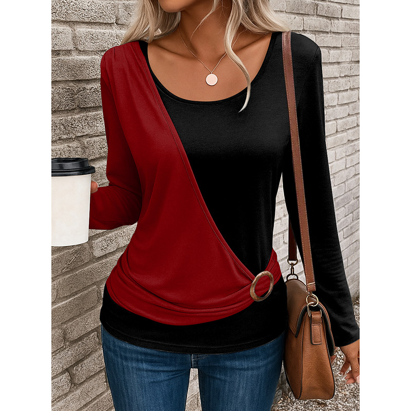 Women's T Shirt Solid Color Stylish Casual Long Sleeve Crew Neck Regular Tops Daily Patchwork Print Sage Green Red Blue Purple Green Summer Fall Winter
