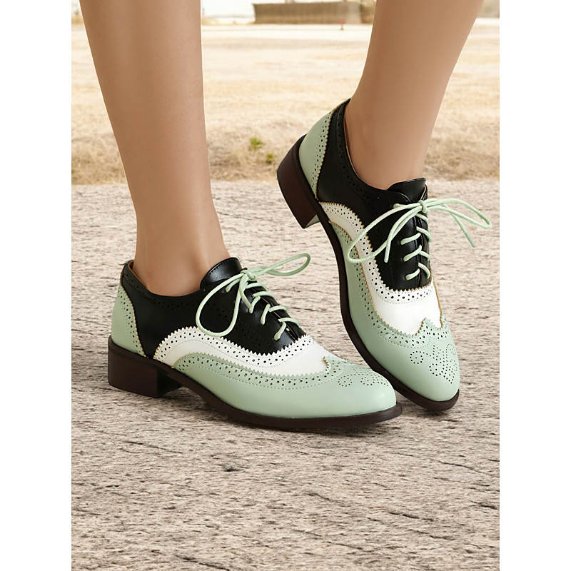 Women's Pink and Black Brogue Shoes – Vintage Inspired Faux Leather Lace-Up Oxford Shoes for Valentine's Day, Retro Style and Casual Outfits