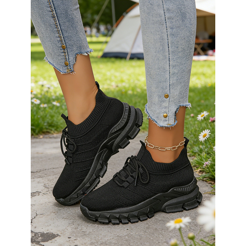 Men's Breathable Knit Lace-Up Sneakers – Lightweight Casual Running Shoes with Cushioned Sole for Walking Everyday Wear