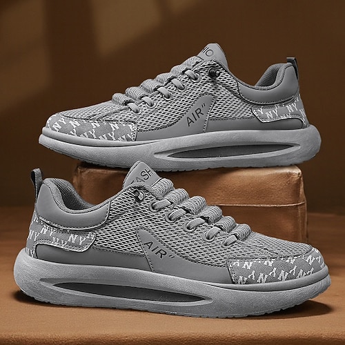 Sneakers da uomo in mesh leggero con dettagli in similpelle, design sportivo casual, comode per l'uso quotidiano, per camminare e viaggiare