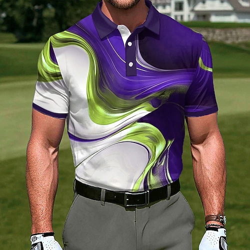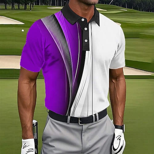 Per uomo Geometrico Golf Polo Sportivi Manica Corta Magliette polo Camicie con Colletto Casual Athleisure Bottoni Estate Primavera Blu Rosso Viola