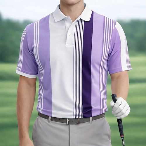 Per uomo A righe Golf Polo Sportivi Manica Corta Magliette polo Camicie con Colletto Casual Athleisure Bottoni Primavera Estate Blu Giallo Viola
