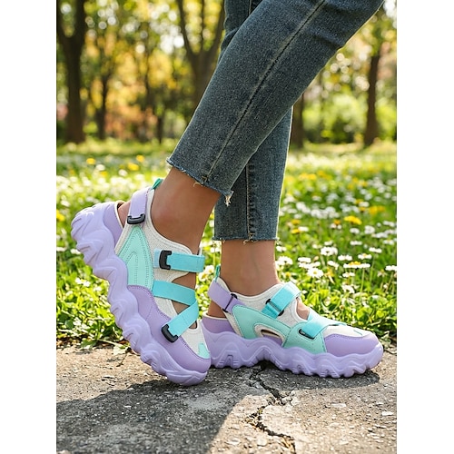 sandali con plateau da donna - scarpe sportive da papà in rete color block per camminare, stile y2k stile di strada
