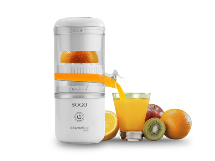 Sogo USB‑Zitruspresse Wiederaufladbar, Auto‑Lift, Anti‑Fruchtfleisch‑Filter – Schnelle, Saubere und Bequeme Saftgewinnung