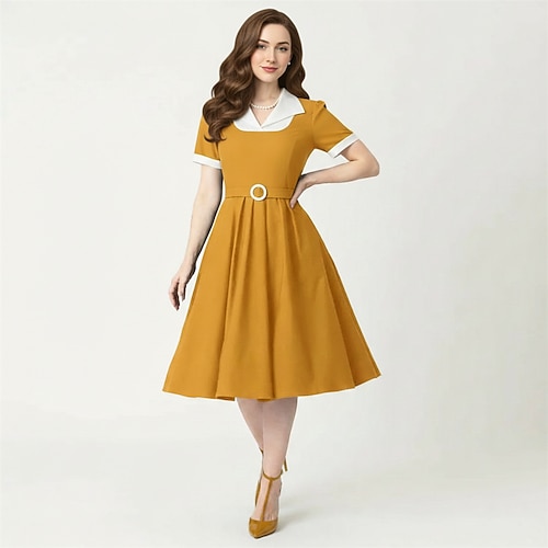 Retrò Vintage Anni 1950 Hepburn Midi Vestito Abito a trapezio Vestito Svasato Maniche corte Aderente Svasato Costume Per donna Carnevale San Valentino Casuale Ritorno a casa Festa a tema retrò