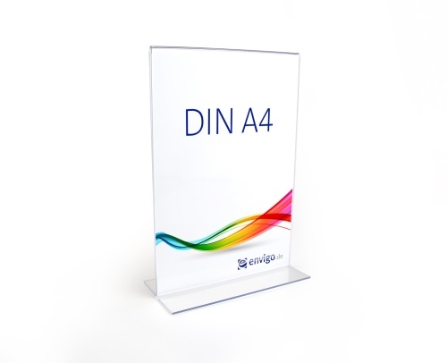 envigo Tischaufsteller »T-Ständer« DIN A4 hoch, glasklarer PS-Kunststoff