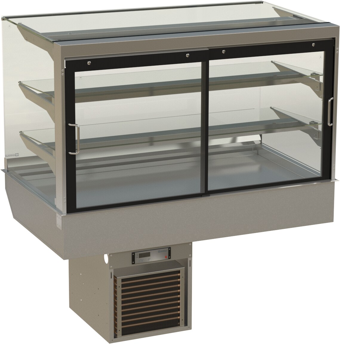 HAGOLA Showcase "Stockholm" eckig, für 3 Kuchenbleche, 3 Auslagen 1330x710/200+410x792mm (BxHxT) steckerfertig mit Transporthalterung