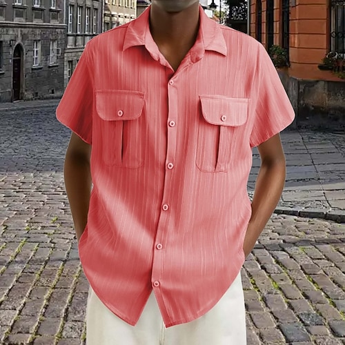 Per uomo Camicia Tessuto Camicia da lavoro Camicia Jacquard Marrone Scuro Nero Bianco Rosa Vino Manica Corta Semplice Bavero Quotidiano Vacanza Tasca Abbigliamento Streetwear Casual