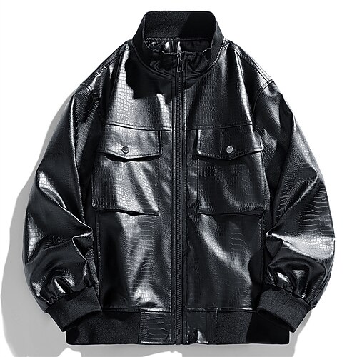 Herren Kunstlederjacke Bikerjacke Motorradjacke Urlaub Täglich Winddicht Tasche Frühling Herbst Einfach Mode Klassisch Stehkragen Regulär Schwarz Rote Jacken