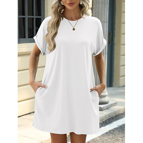 Per donna Mini Abito Vestito T-Shirt Abito a Tubino Abito Estivo Casual Quotidiano Vestibilità comoda Semplice Manica Corta Girocollo Blu Bianco Rosa Verde Estate