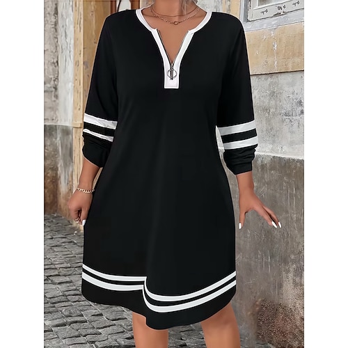 Per donna Mini Abito Abito a trapezio Abito Estivo Casual Quotidiano Vestibilità comoda A righe Manica 3/4 Scollo a V Nero Bianco Estate Primavera Autunno