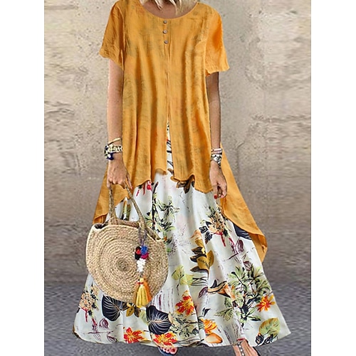 Per donna Abito maxi Abito a trapezio Abito Estivo Casual Quotidiano Vestibilità comoda Floreale Manica Corta Girocollo Giallo Rosa Rosso Viola Estate Primavera Autunno