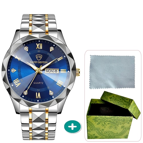 Orologio al quarzo da uomo alla moda, quadrante digitale a rombo, doppio calendario, luminoso, impermeabile, con cinturino in acciaio, decorazione in strass, orologio da lavoro, regalo preferito