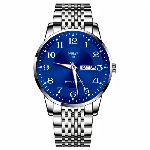 Orologio al quarzo da uomo: elegante stile business, lancette luminose, impermeabile IPX7, doppio calendario con visualizzazione di data e giorno, cinturino in lega, regalo alla moda per ufficio o sport