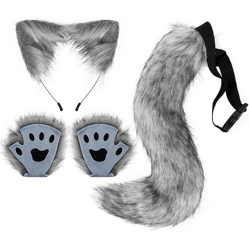 Set di fascia per capelli con orecchie di gatto e guanti con zampe di gatto fatti a mano: accessori cosplay realistici, orecchie di animali, guanti senza dita per Halloween, feste e spettacoli