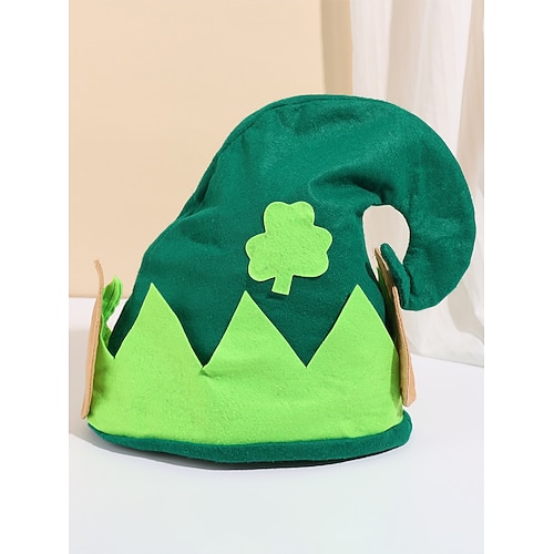 Cappello unisex da folletto per San Patrizio, cappello da elfo in stile trifoglio verde, morbido materiale in poliestere, divertente copricapo da festa irlandese per uomini e donne