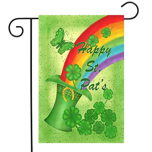Bandiera da giardino per esterni per il giorno di San Patrizio, decorazione per feste irlandesi con trifoglio, cappello e arcobaleno per cortile, patio e prato