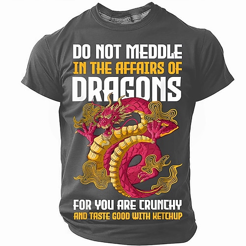 T-Shirt Grafica da Uomo Con Drago Divertente 'Non Intromettersi Negli Affari Dei Draghi' Citazione di Ketchup Croccante a Maniche Corte
