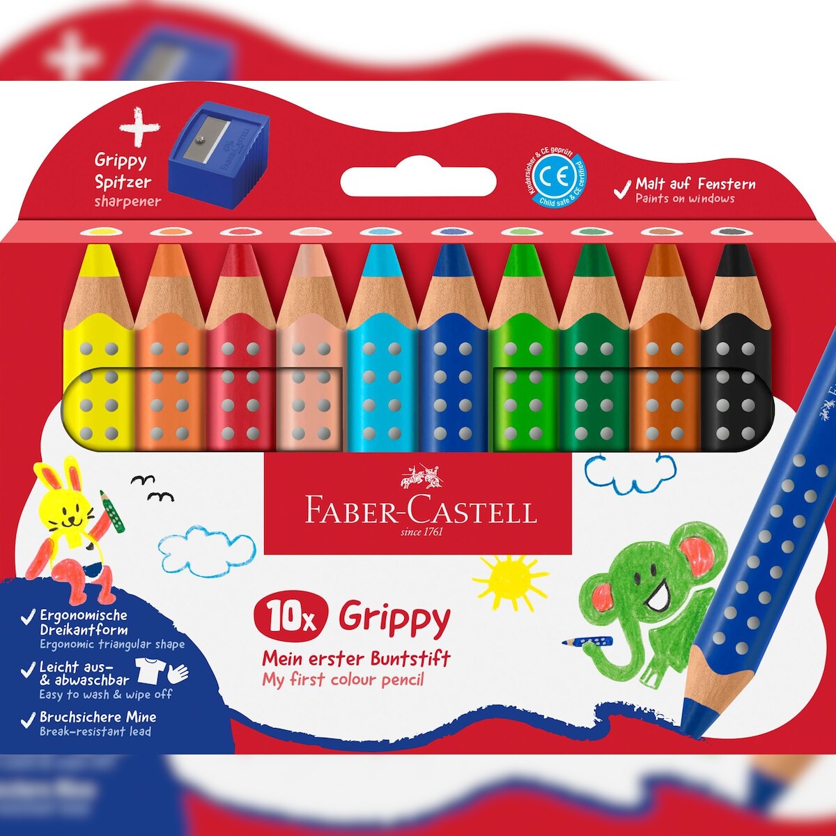 Faber Castell Buntstift Grippy 10 mm 10er Set mit Spitzer