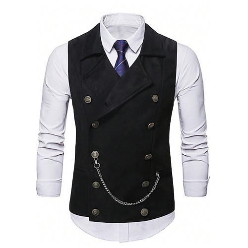 Per uomo Gilet in finta pelle scamosciata Gilet Vacanza Feste Affari Moda Casual Primavera Autunno Tasca Bottoni Poliestere Confortevole Semplice Doppiopetto Bavero Vestibilità regolare Nero Blu