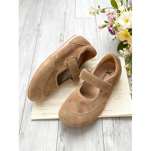 comode ballerine Mary Jane da donna in finta pelle scamosciata, vestibilità ampia, cinturino regolabile e design leggero, perfette per l'abbigliamento casual, l'uso quotidiano e il lavoro