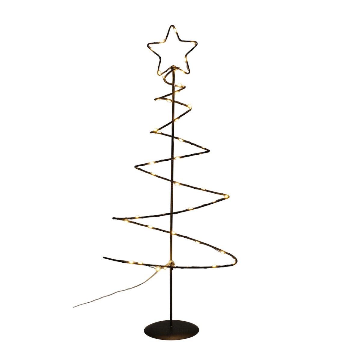 WellHome - Dekorativer schwarzer Weihnachtsbaum aus Metall mit Stern, 46 LED-Lichtern und Timer, 24 x 10 x 53 cm