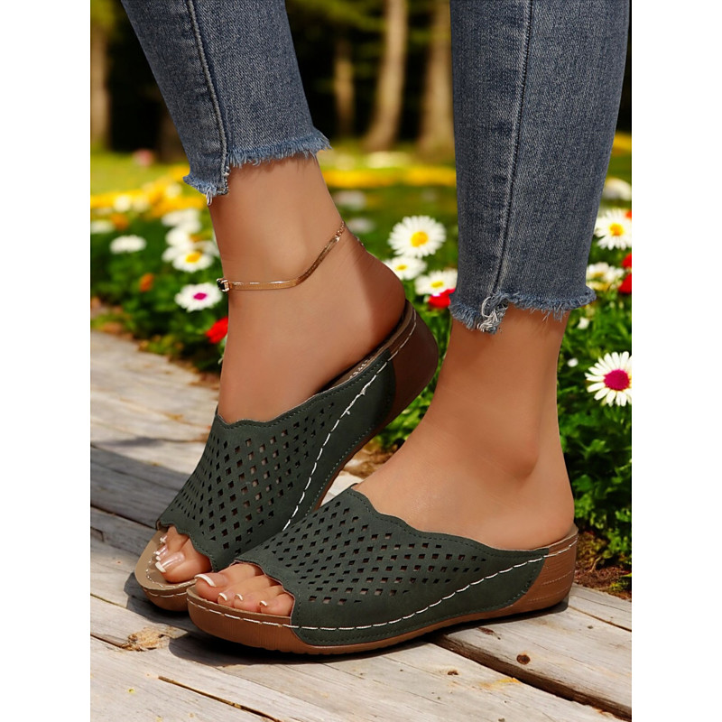 Women's Blue Cutout Sandals - Breathable Open-Toe Comfort Slides for Walking Travel