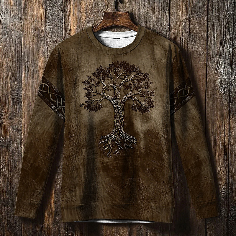 Men's Sweatshirt Blue Brown Green Khaki Crew Neck Tree Of Life Yggdrasil Celtic Knot Print Casual Daily Holiday Vintage Viking Fall Winter Clothing Apparel Hoodies Sweatshirts