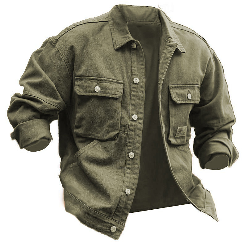 Men's Lightweight Jacket Shirt Jacket Casual Jacket Work Jacket Formal Home Pocket Spring Fall Winter Solid Color Vintage Fashion Turndown Regular Black Brown Green Khaki Jacket