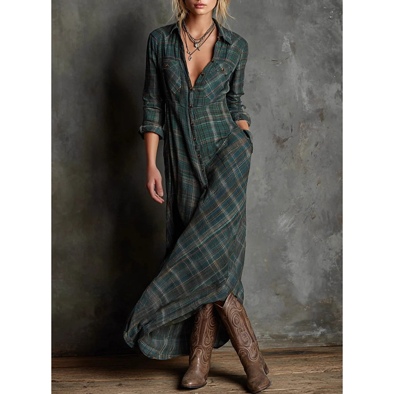 Women's Maxi Dress Sheath Dress Work Dresses Fit And Flare Dress Vacation Party Casual Party Office Birthday Regular Fit Graphic Geometric Plaid Long Sleeve Lapel White Red Green