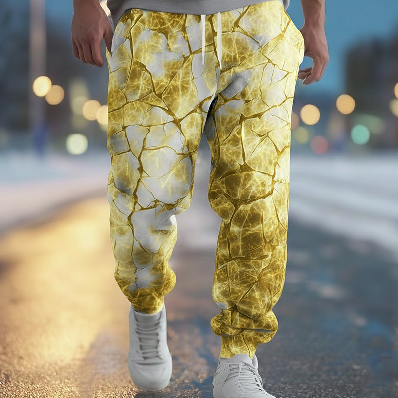 Men's Optical Illusion Cracked Ice Sweatpants Joggers Trousers Mid Waist Drawstring Elastic Waist Casual Outdoor Camping Hiking Hunting Athletic Sweatpants with Pockets Fall Winter 3D Print Blue