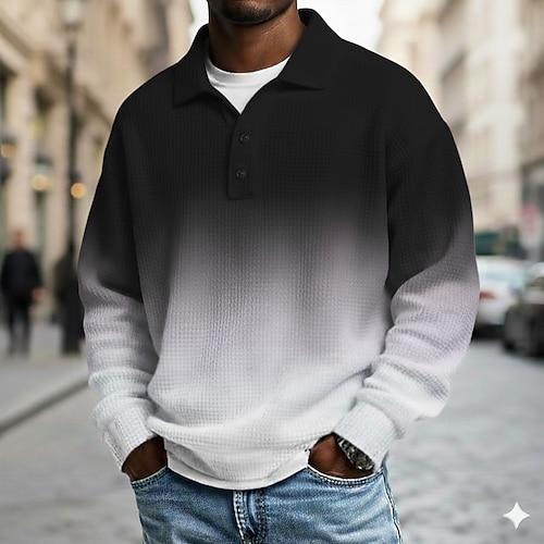 Per uomo Sfumatura Magliette Polo a Nido d'Ape Manica Lunga Magliette polo Bavero Casual Scuola Athleisure Abbigliamento quotidiano Stampa 3D Primavera Autunno Inverno Nero Blu marino Azzurro cielo