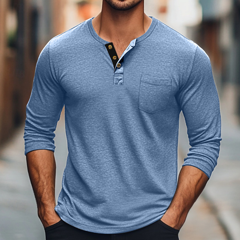 Men's T shirt Henley Shirt Long Sleeve Shirt Plain Henley Street Daily Long Sleeve Buttons Clothing Apparel Fashion Designer Casual Comfortable