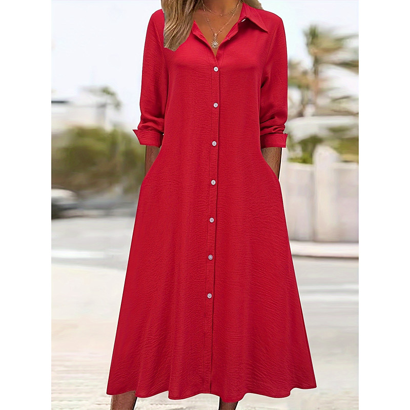 Women's Midi Dress Shirt Dress Shift Dress Casual Date Regular Fit Solid Color Long Sleeve Shirt Collar Blue Black Red Orange Spring Fall