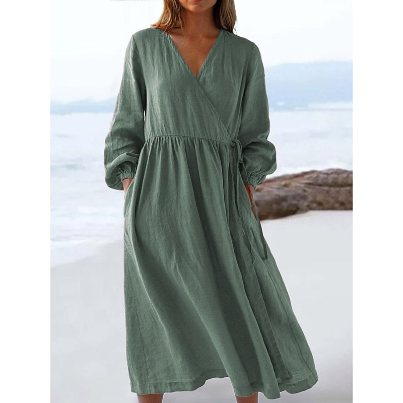Women's Midi Dress Swing Dress Elegant Vintage Fashion Outdoor Daily Going out Loose Fit Plain Long Sleeve Crew Neck caramel Light Green Mauve Light Grey Summer Spring