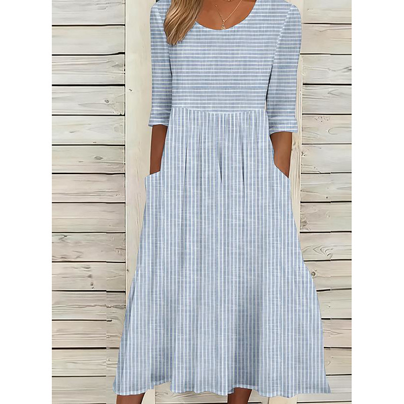 Women's Midi Dress Casual Dress A Line Dress Elegant Stylish Casual Vacation Daily Loose Fit Stripe Short Sleeve Crew Neck Gray Light Blue Summer Spring