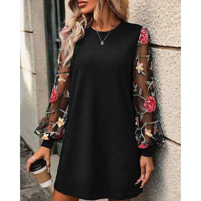 Women's Mini Dress Casual Dress T Shirt Dress Tee Dress Print Dress Modern Outdoor Vacation Daily Regular Fit Floral Long Sleeve Crew Neck Blue Black Apricot Summer Spring