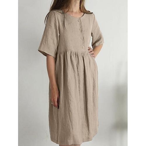 Per donna Abito Midi Abito a trapezio Abito Estivo Casual Quotidiano Vestibilità comoda Semplice Mezza Manica Collo a V blu navy Rosa Marrone Verde Estate Primavera